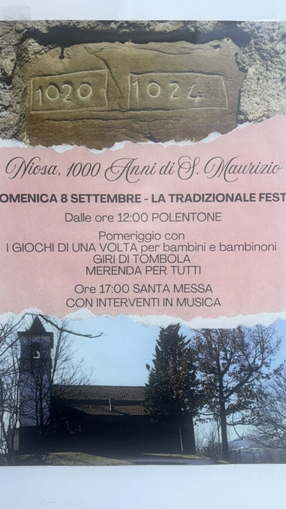 1000 anni per la chiesa di San Maurizio a Niosa. Per festeggiare vi aspettiamo l’8 settembre per il tradizionale polentone. Sul numero di settembre di Carta Bianca Magazine uno speciale sull’iniziativa.